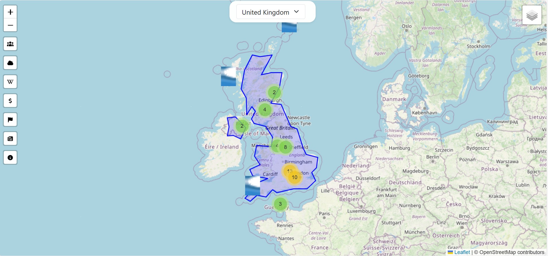 Provides details for all countries worldwide including maps, currency, news, and weather.